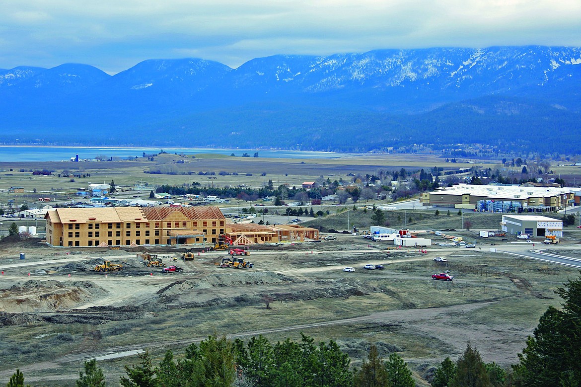 The Red Lion Hotel, left, and Valley Glass, bottom right, are currently under construction in Ridgewater Properties, located on the south side of Polson off U.S. 93. Both businesses are slated to be open for business in early summer.