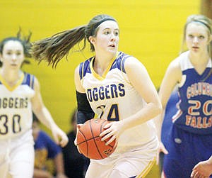 Hailey Craig looks to pass in fourth quarter vs. Columbia Falls 2-21-15.