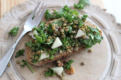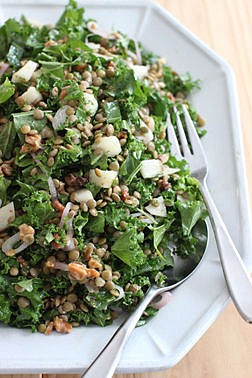One of my favorite winter salads that manages to feel both energizing and comforting at the same time is this chopped kale and lentil salad. The star is a handy box of steamed precooked lentils. Most grocers carry these alongside the packaged produce. Keep a box in the refrigerator and you'll find a million ways to use those lentils.
