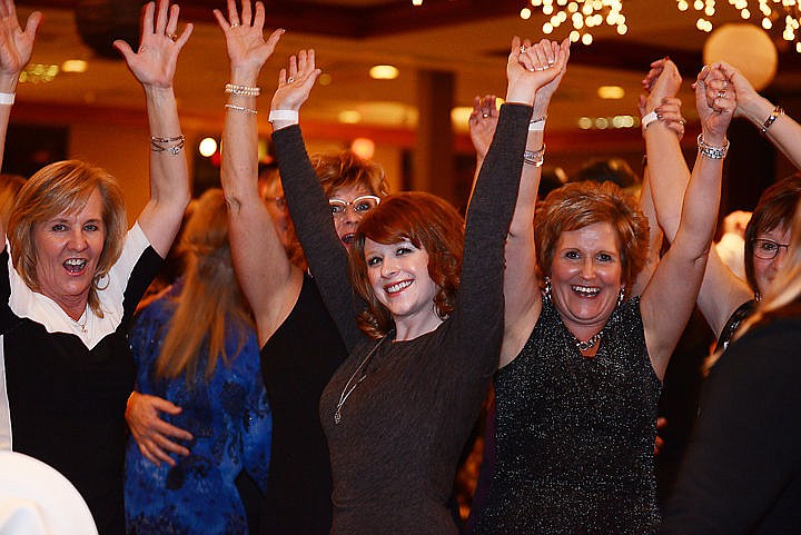 Elissa McLeod of Lethbridge, center, and others cheer at First Night Flathead at the Red Lion in downtown Kalispell on Wednesday, December 31. (Brenda Ahearn/Daily Inter Lake)