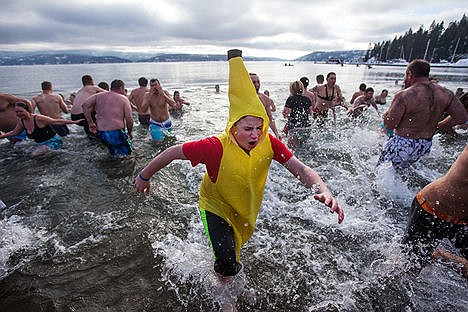Jake Serr, 11, talked about the swim with his two cousins from Texas while wearing a banana suit. The Coeur d’Alene youth said “the whole thing is crazy” with a big smile on his face as he anxiously awaited what would be his second plunge.