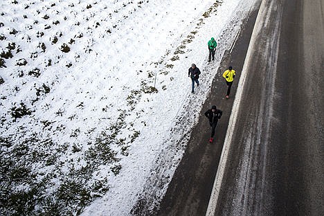 COEUR d'ALENE - More than 400 people huddled together for warmth behind Michael D's restaurant in Coeur d'Alene Thursday morning, anticipating the start of Tesh Inc.'s annual "Hangover Handicap."