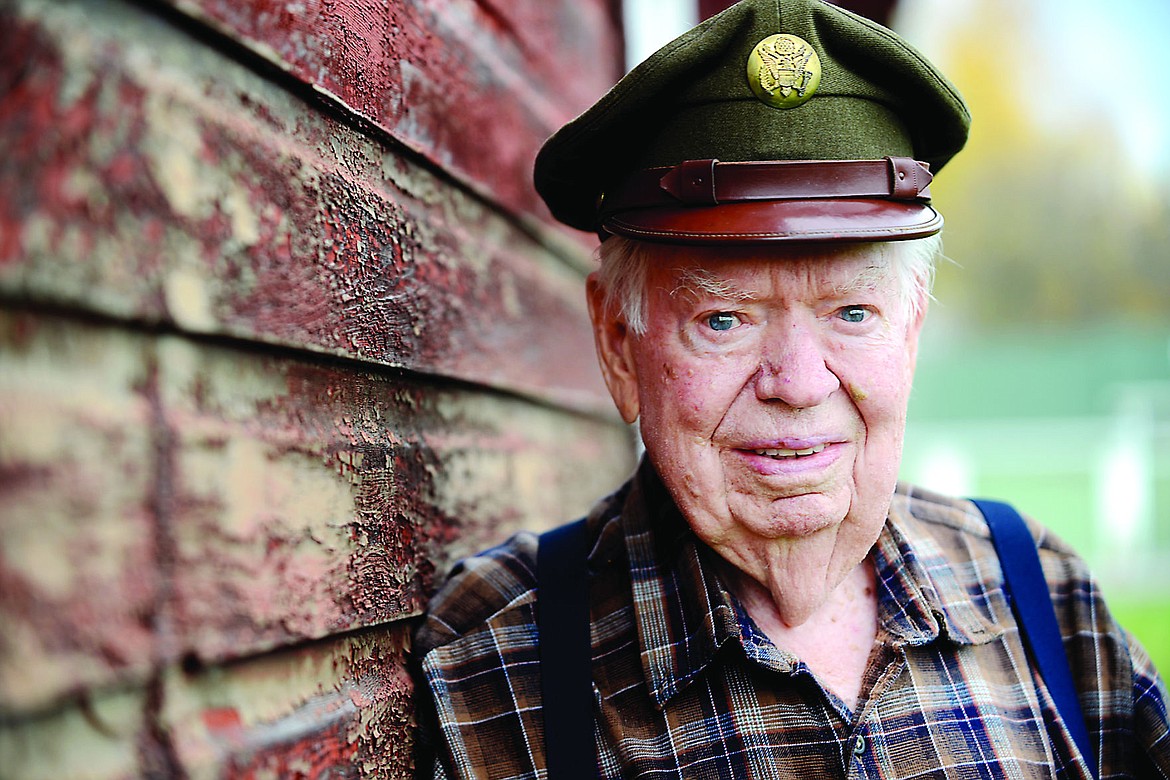 World War II veteran Jim Edmiston wears his old Army cap outside his home in Helena Flats on Nov. 6, 2014. Edmiston’s father, James Gray Edmiston, also was an Army veteran. (Brenda Ahearn/Daily Inter Lake)