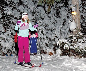 As twilight fell on Saturday, propane lanterns lit Shorty’s Loop trail at the South Flower Creek Cross-Country Trails southwest of Libby. Greg and Susie Rice, along with Gary Crismon, hung lanterns on trees about every 30 yards, prepared hot cocoa and treats, and had a nice fire prepared to welcome those who enjoyed the first night ski of the season put on by the Kootenai XC Ski Club.