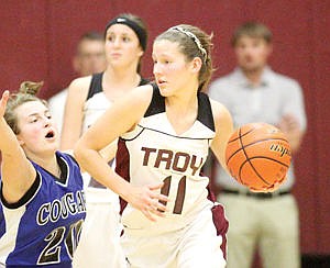 Lindsay Laws steals the ball from Kaitlyn Downey in first quarter vs. Troy, Jan. 2.