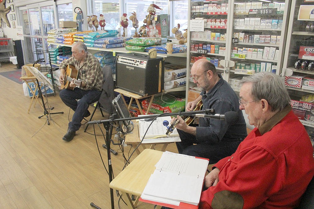 From left to right; Jim Tisdale, Michael Stepan and Gary Woodson play music inside Castles grocery store in Superior in the days leading up to the Christmas holiday.