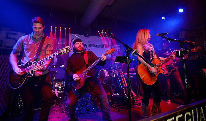 The Copper Mountain Band performed at the Great Northern Bar in Whitefish on Friday, January 2. From left are CJ Krager, lead guitar, Israel David, vocals, guitar and sax, Jacque Jolene, lead singer, Nate Norman, bass, and in the background is drummer Johnny Betts. (Brenda Ahearn/Daily Inter Lake)