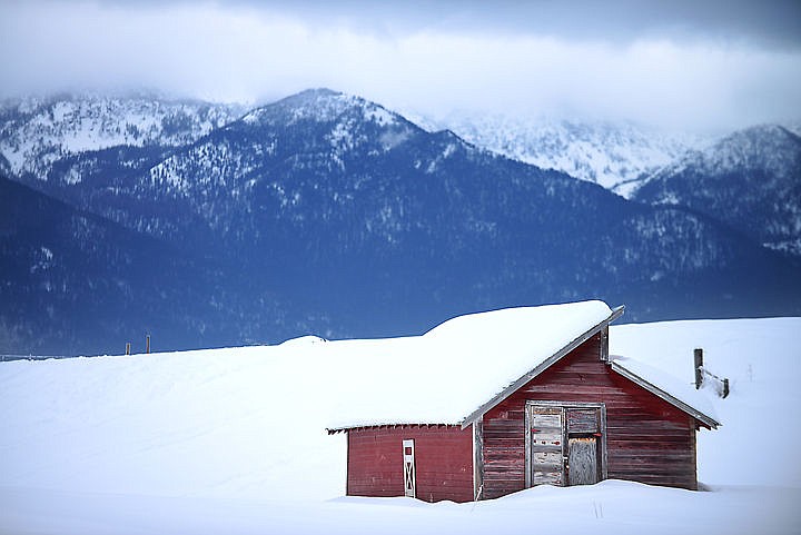 A small red barn adds a splash of color to a winter scene near Echo Lake on Thursday, January 8. (Brenda Ahearn/Daily Inter Lake)