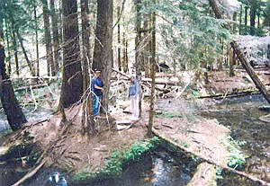 Three Rivers Ranger District received word from a concerned individual that vandalism had occurred at the Ross Creek Cedars day-use area. The “Braided Bridge” a land bridge made of intertwined cedar roots was removed sometime after Halloween. The popular bridge accessed a small island and had been a very popular attraction for families for decades. “The bridge and island no doubt are in many family picture albums, they’re in my family photos as well,” said Dave Thorstenson, recreation manager for Three Rivers Ranger District. “Obviously the intertwined root system appealed to someone’s artistic taste, so much so that they used a chainsaw to remove it,” added Thorstenson.