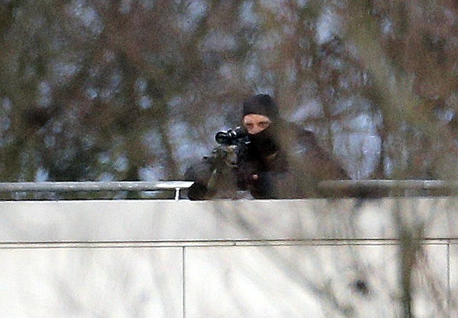 At least seven people were killed Friday — the three terrorists and at least four hostages — a policewoman was killed Thursday and 12 people were massacred in the Paris newspaper attack Wednesday. Sixteen hostages were freed Friday, one from the printing plant where the two brothers were holed up and 15 others from the Paris grocery store.