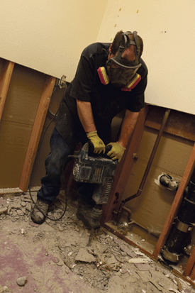 Jackhammers were making quick work of the concrete floor of the women’s restroom as laborers worked to remove existing plumbing and preparing for new.