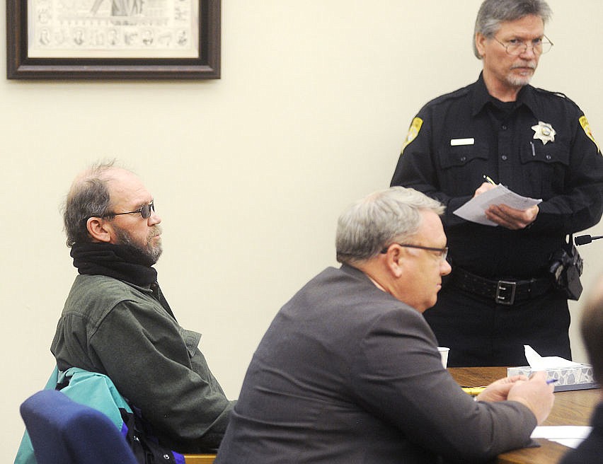 Bruce Frey listens as he is found guilty of three counts of felony sexual assault in Flathead District Court late Friday night. (Aaric Bryan/Daily Inter Lake)