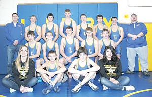 Front row from left: Manager Gabrielle DeLeo, Mason Sams, Dylan Koehler, Manager Alma Casanova. Middle row from left: Tim Brivka, Laine Young, Dylan Parrish, Reed Christensen, Tanner Wood. Back row from left: Head Coach Kelly Morford, Zach Crace, Michael Miller, Garret Chapel, Alex Yeadon, Dylan Roby, Cody Kessel, Assistant Coach Josh Chapel. Absent at time of photo: Assistant Coach John Love, Nolan Dewine and Michael Lehnert.