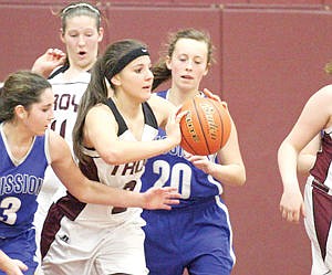 Aurora Becquart passes to Allie Brown in third quarter vs. Mission Saturday, Jan. 17.