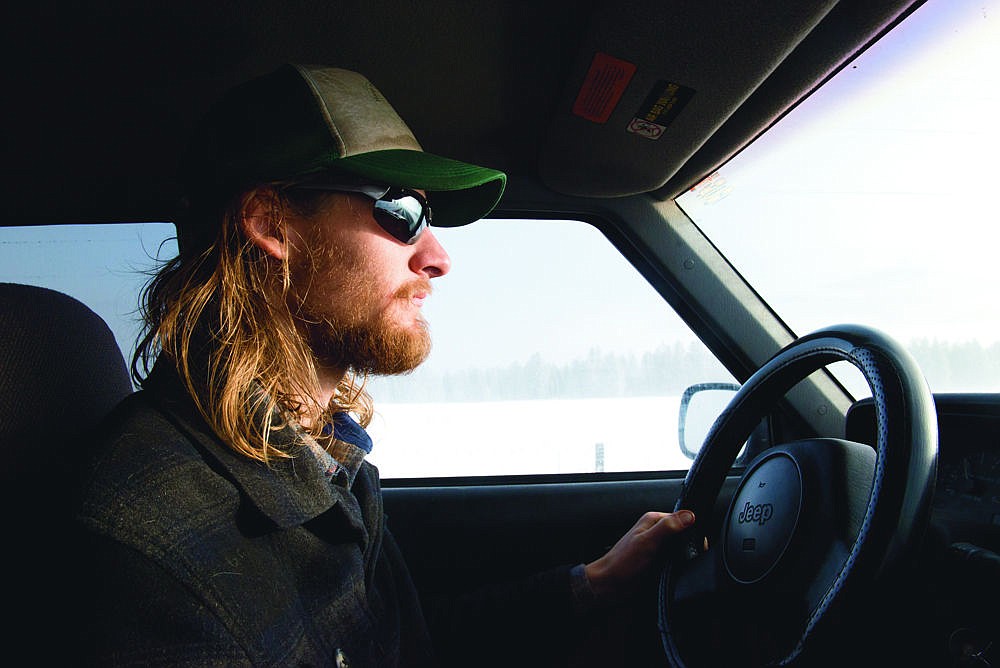 David Martin scans along road ways and snow embankments for signs of wolves during the group's first day of patrolling last weekend.