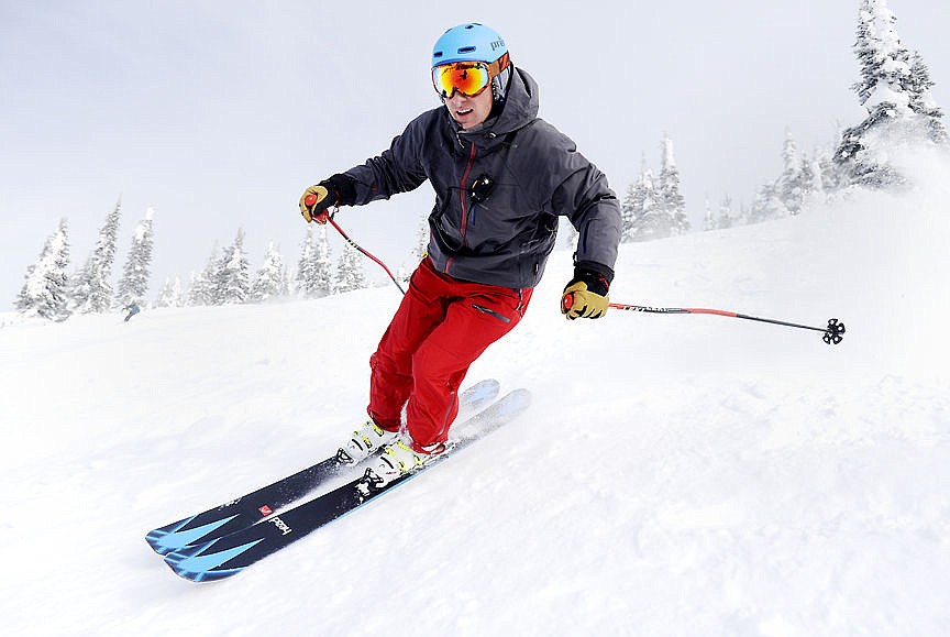 Billy O’Donnell speeds down a run at Whitefish Mountain Resort on a bluebird day Wednesday. The sunny days are predicted to end today with cloudy skies moving in until Sunday. (Aaric Bryan/Daily Inter Lake)
