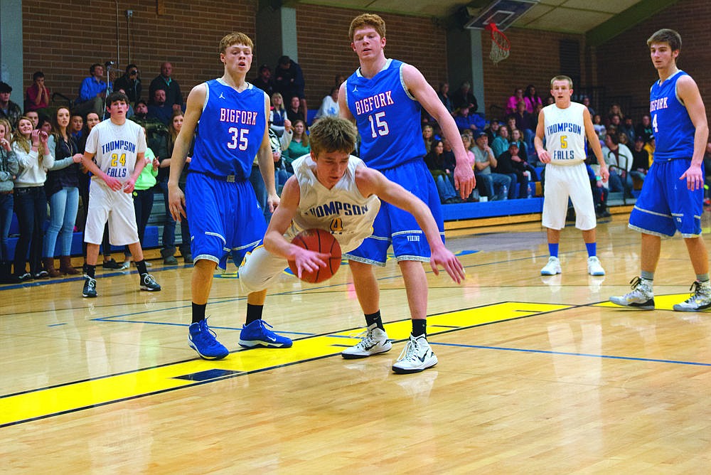 Tanner Laws, is fouled during the last seconds of the team's fourth quarter game against Bigfork.