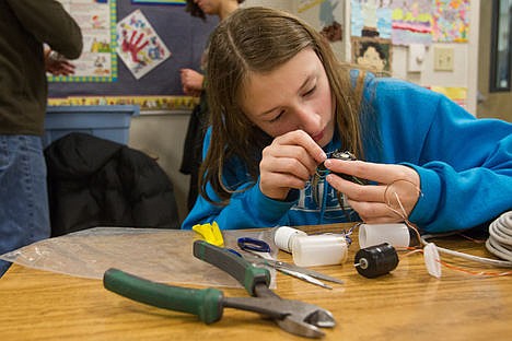"I'm just putting in a little wire," explained sixth-grader Rebekah Intermill, 12, as she worked to place a small circuit board in a control box. "It's not really put together yet."