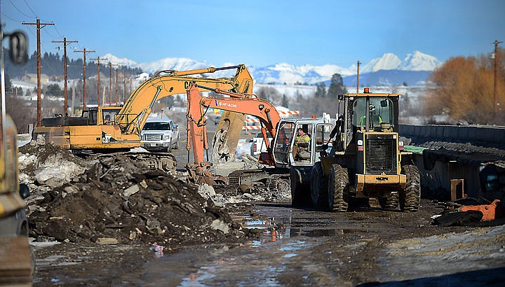 Construction crews reopen work on U.S. 2 West on Monday, January 26, after the winter shut down. According to a press release the work will be taking place off the roadway and should not affect traffic. (Brenda Ahearn/Daily Inter Lake)