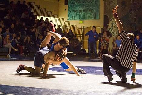 Like a patient predator waiting to pounce on its prey, Peregrina quickly went for the pin within the first minute of his 138-pound match against Lake City's David Rusche. With Coeur d'Alene up just 33-31, a win by decision by Rusche would have clinched it for the Timberwolves.