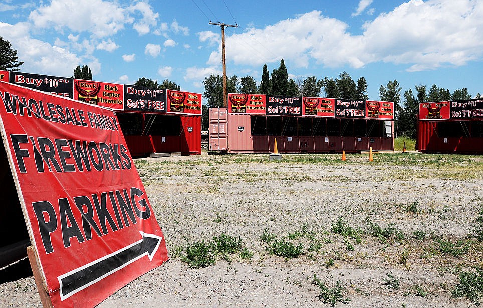 The Black Raptor Fireworks stands and parking lot sit empty of customers on Wednesday. (Aaric Bryan/Daily Inter Lake)