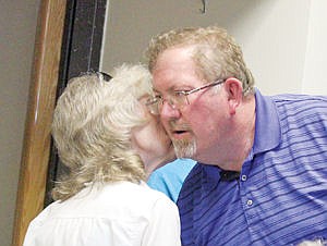 Retiring Kendra Lind, left, and Lincoln County Commissioner Mark Peck during Lind's retirement party June 30.