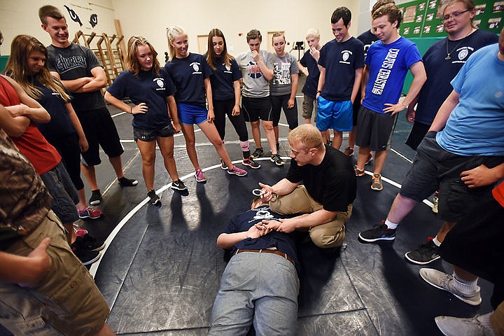 Twenty or so youths gathered around in a circle as Kalispell Police officer Dennis Bain placed his knee on the back of Brester, who was face-down on the mat.