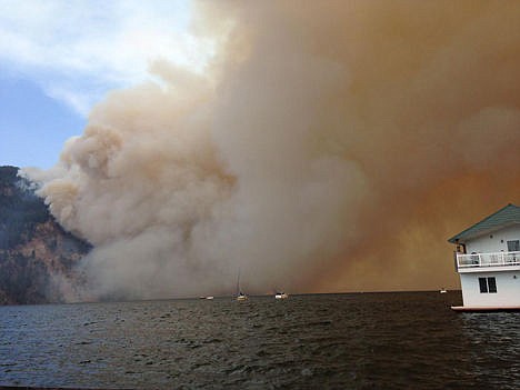 Flames kicked up by the wind quickly engulfed the steep, forested mountainside overlooking southern Lake Pend Oreille.
