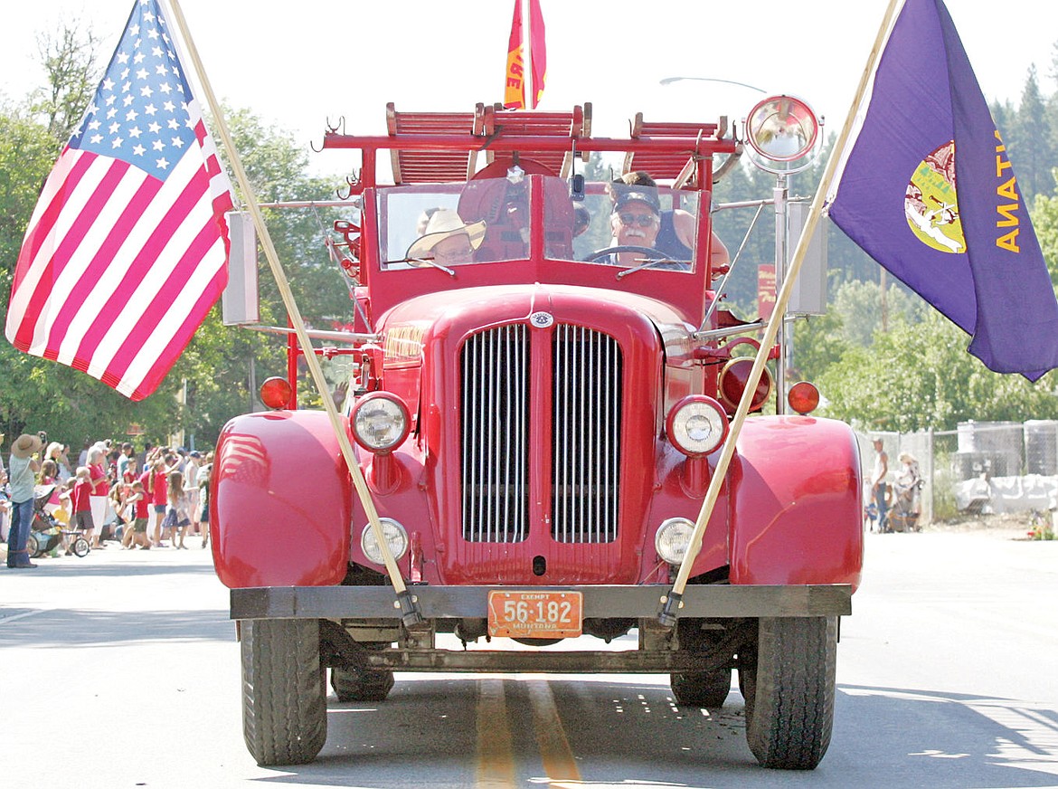 Gene Rogers driving TVFD's old fire truck the '34 Seagrave flathead V12 during Troy's Old Fashion Fourth of July parade.