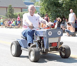 Royce Pemberton and his racing lawnmower, Troy's Old Fashioned Fourth of July parade July 4, 2015.