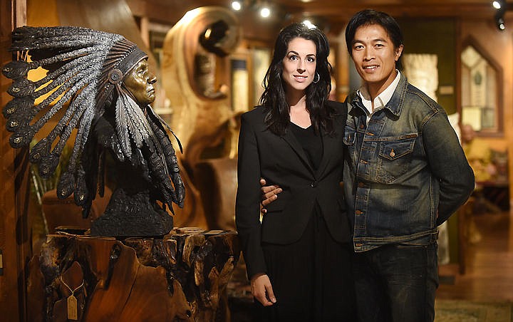 Portrait of Erica and Sunti Pichetchaiyakul in the new location of the Sunti World Art Gallery in Whitefish.