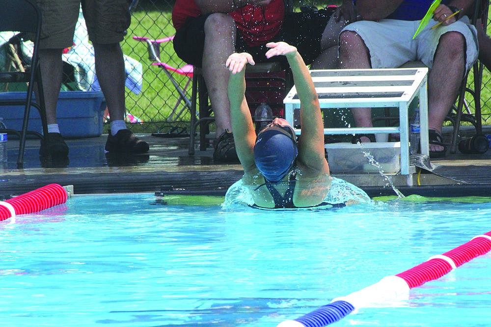 Danika Whitcomb pushes off the wall during the 100-meter backstroke competition at last weekend's swim meet.