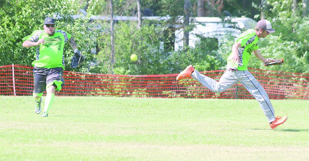 Softball players race for the ball during a game at the fields in St. Regis as part of the annual Firecracker Classic.