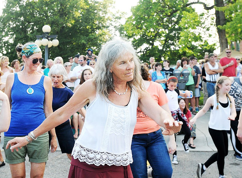 Debbie Moon dances during the flash mob. (Aaric Bryan/Daily Inter Lake)