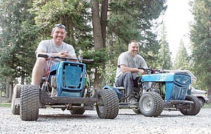 Racing lawnmowers with Darren Short, left, and Jeff Forster.