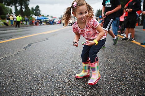 He looked up at his family and smiled, content with his fare of Tootsie Rolls and lollipops thrown from the floats and vehicles of the Post Falls Festival Parade.