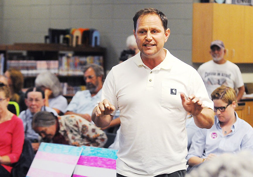 Derek Skees tells the school board there is no need to change their existing discrimination policy during a the public comment section of the school board's meeting on Tuesday. (Aaric Bryan/Daily Inter Lake)