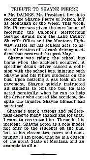 “Shayne’s quick actions and selflessness deserve many thanks and for that, I want to recognize him,” Daines told his fellow senators. “Through this incident, Shayne acted as a role model not only to the students on the bus, but to his classmates, peers and community. I am proud that he is a citizen of the great state of Montana and an example to all.”