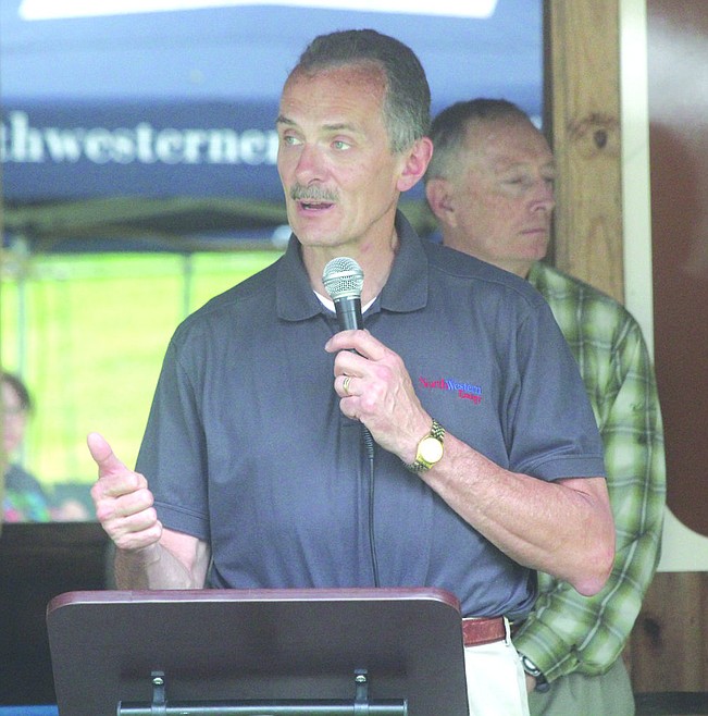 NorthWestern President and CEO Robert C. Rowe welcomed attendees to the Thompson Falls Dam's centennial celebration last Friday at the power park.