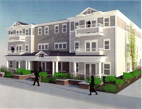 The 8,392-square-foot building on two lots will have four two-bedroom apartments and eight one-bedroom places with four garages and eight covered parking spaces to the rear. Jolleen Severns of Architects West designed the building with balconies for each place.