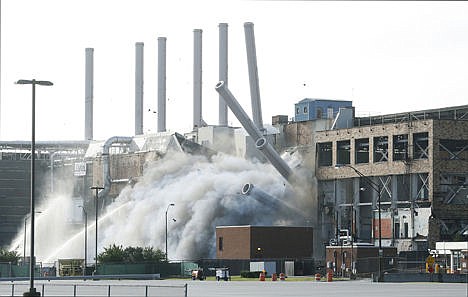 Saturday, demolition work on some of the older buildings continued with the implosion of Kodak Building 53, turning it into a pile of rubble.