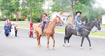 Nicholas and Alexander Harper lead the way during the Junior Fair Parade July 17.
