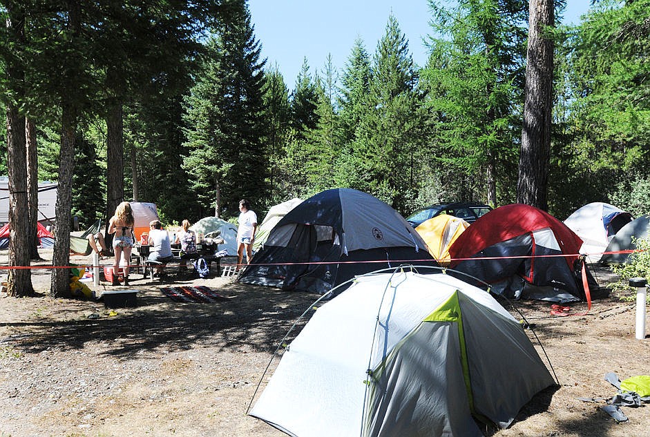 About 30 workers at Glacier National Park have set up tents at Glacier Lodges in Coram because of the Reynolds Creek Fire. (Aaric Bryan/Daily Inter Lake)