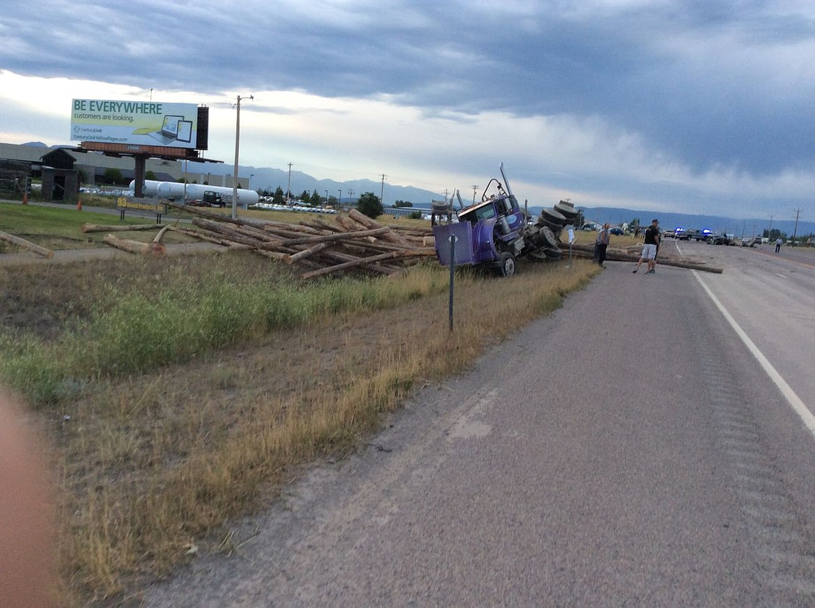 “The truck was northbound, loaded with logs on 93,” said Montana Highway Patrol Trooper Robert Hensley. “The car was coming off of Rocky Cliff [Drive], crossing the highway.”