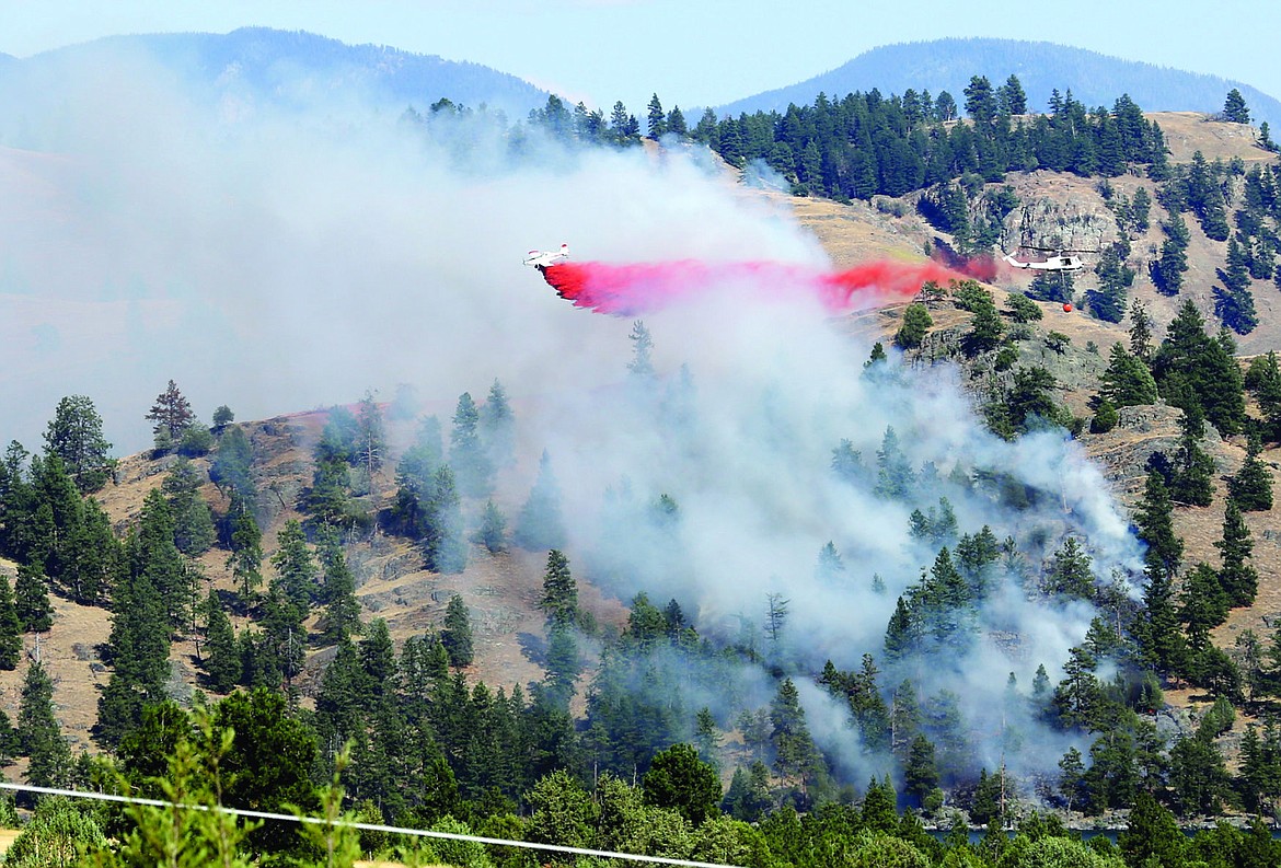 Boats from the Confederated Salish and Kootenai Tribes Fish, Wildlife, Recreation, and Conservation Department, the Lake County Sheriff’s Department and Lake County Search and Rescue responded Wednesday by ferrying crews over to the island. Two planes dropped retardant on the flames, and one helicopter responded by dropping water.