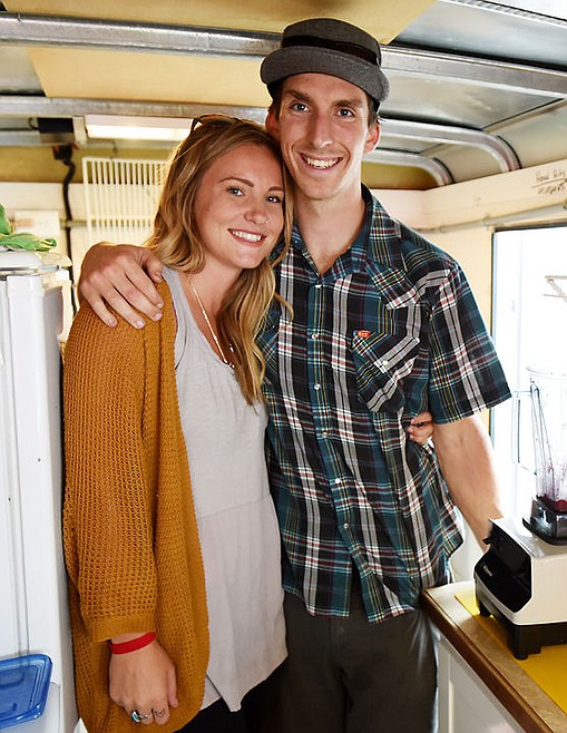 Lindley and Jared Lynch in their Mountain Berry Bowls trailer on Tuesday, July 14, in Whitefish. The bright purple trailer can usually be found on Backer Avenue in front of the Whitefish VFW from 10 a.m. - 5 p.m. Wednesday through Sunday. (Brenda Ahearn/Daily Inter Lake)