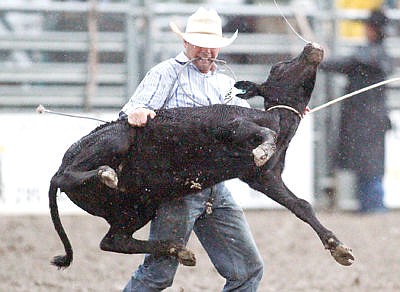 Nineteen seconds flat in the tie down roping for Kass Kayser of Ellensburg, Wash., Saturday evening.