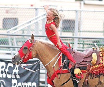 Thursday's rodeo with five-year-old trick rider Piper Yule.