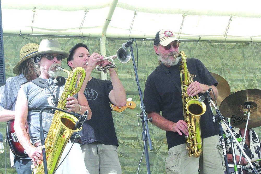 Peter Barberio (left), Jordan Demander (center) and Paul Philips (right) of the band Zeppo, open the group's set during the Hot Springs Blues Festival at the Symes Hotel in Hot Springs last Saturday.