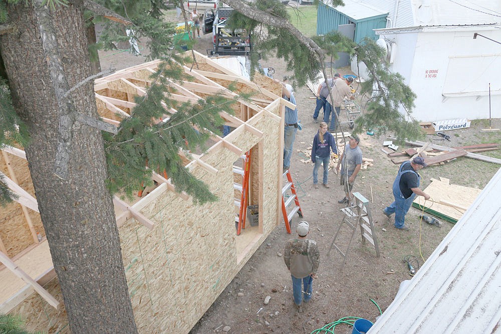 A bird's eye view of the 4-H booth under construction at the county fairgrounds in Superior.